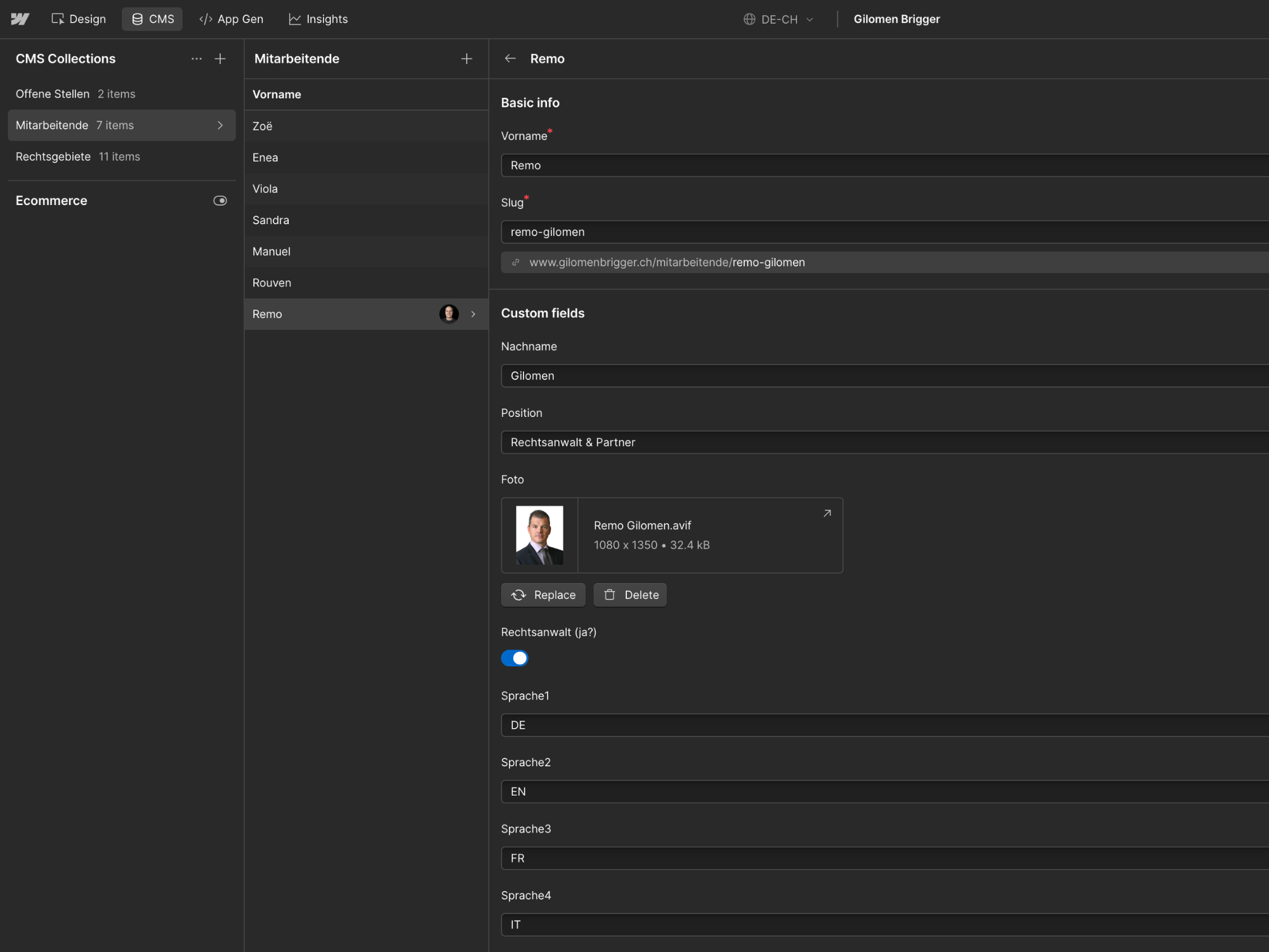 Komplette Neuentwicklung der mehrsprachigen Webpräsenz für Gilomen & Brigger inklusive CMS und Webflow Schulung