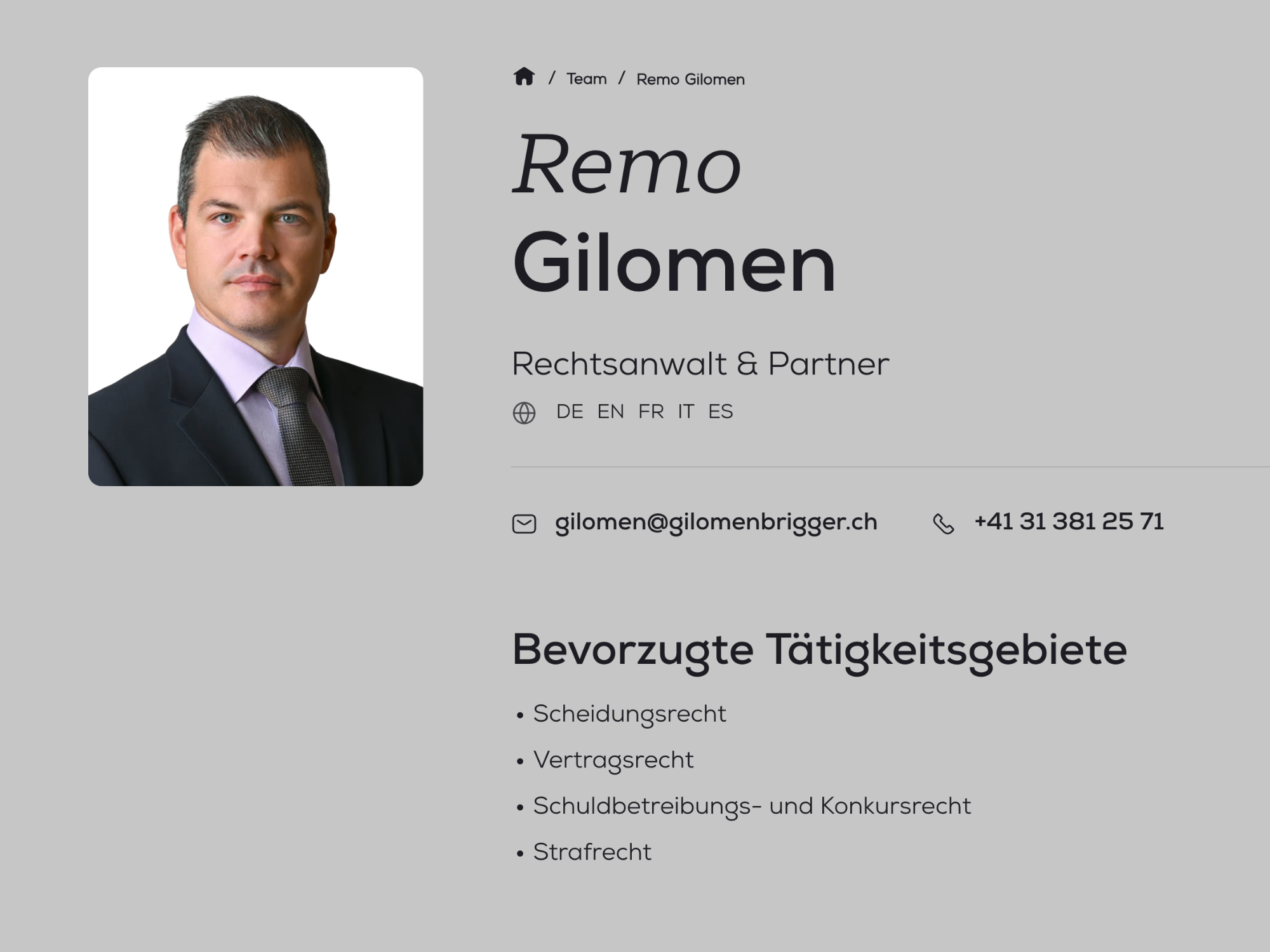 Gilomen & Brigger ist eine moderne Anwaltskanzlei mit Sitz in Bern und Kerzers, die kompetente Rechtsberatung in verschiedenen Fachgebieten anbietet. Die Kanzlei legt grossen Wert auf eine persönliche Betreuung, klare Kommunikation und massgeschneiderte Lösungen für ihre Mandantinnen und Mandanten. Mit einem breiten Leistungsportfolio deckt Gilomen & Brigger juristische Bedürfnisse in diversen Lebens- und Geschäftslagen ab.